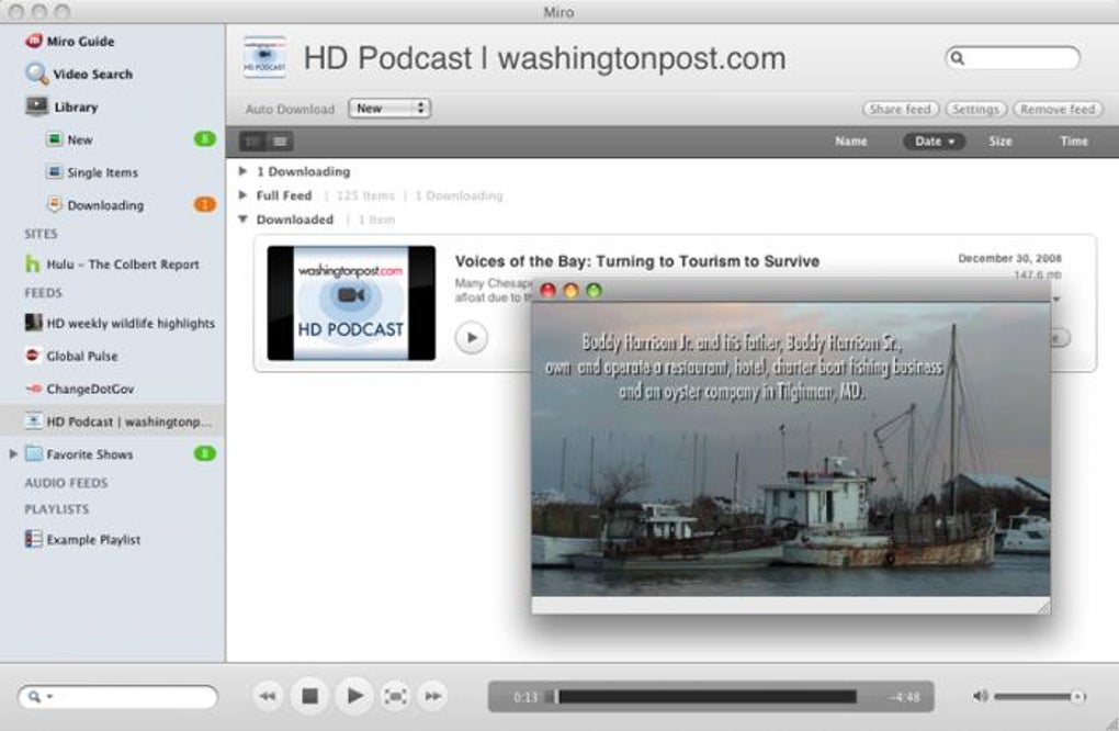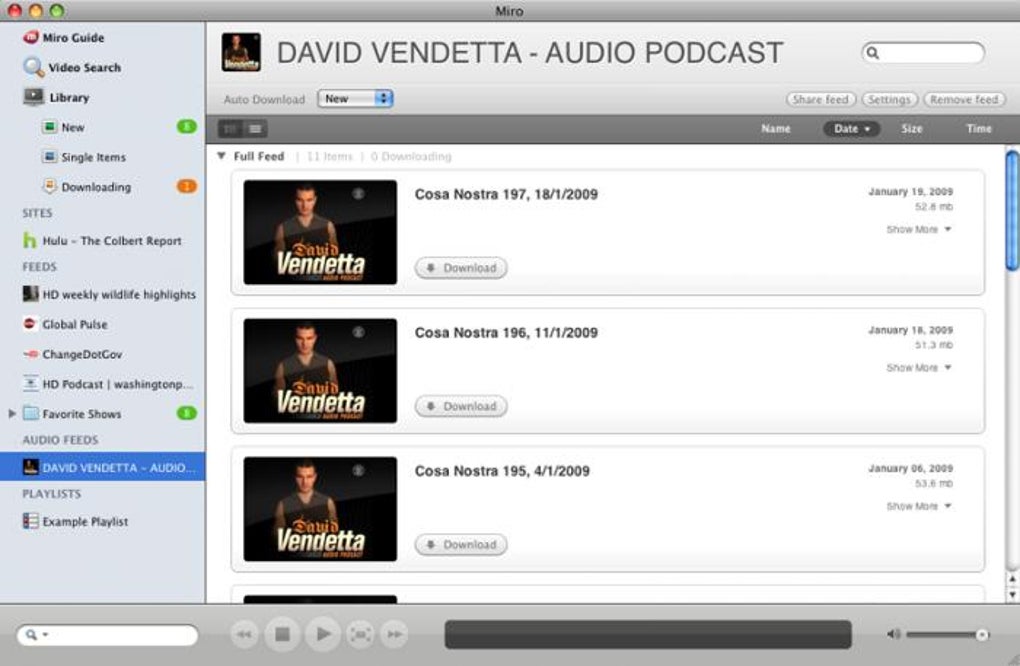 Miro transforma seu Mac em uma central multimídia muito potente. Baixe arquivos torrent e acesse vídeos, músicas, podcast e notícias RSS usando um programa só. O Miro é grátis e em português.